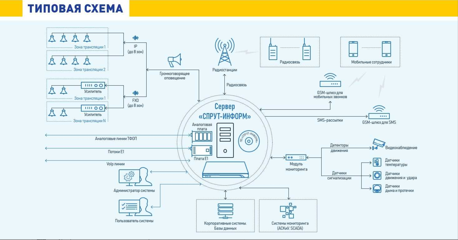 Автономное устройство для оповещения по различным типам каналов АПК Спрут-Информ CU Ultimate 2Tb 2U